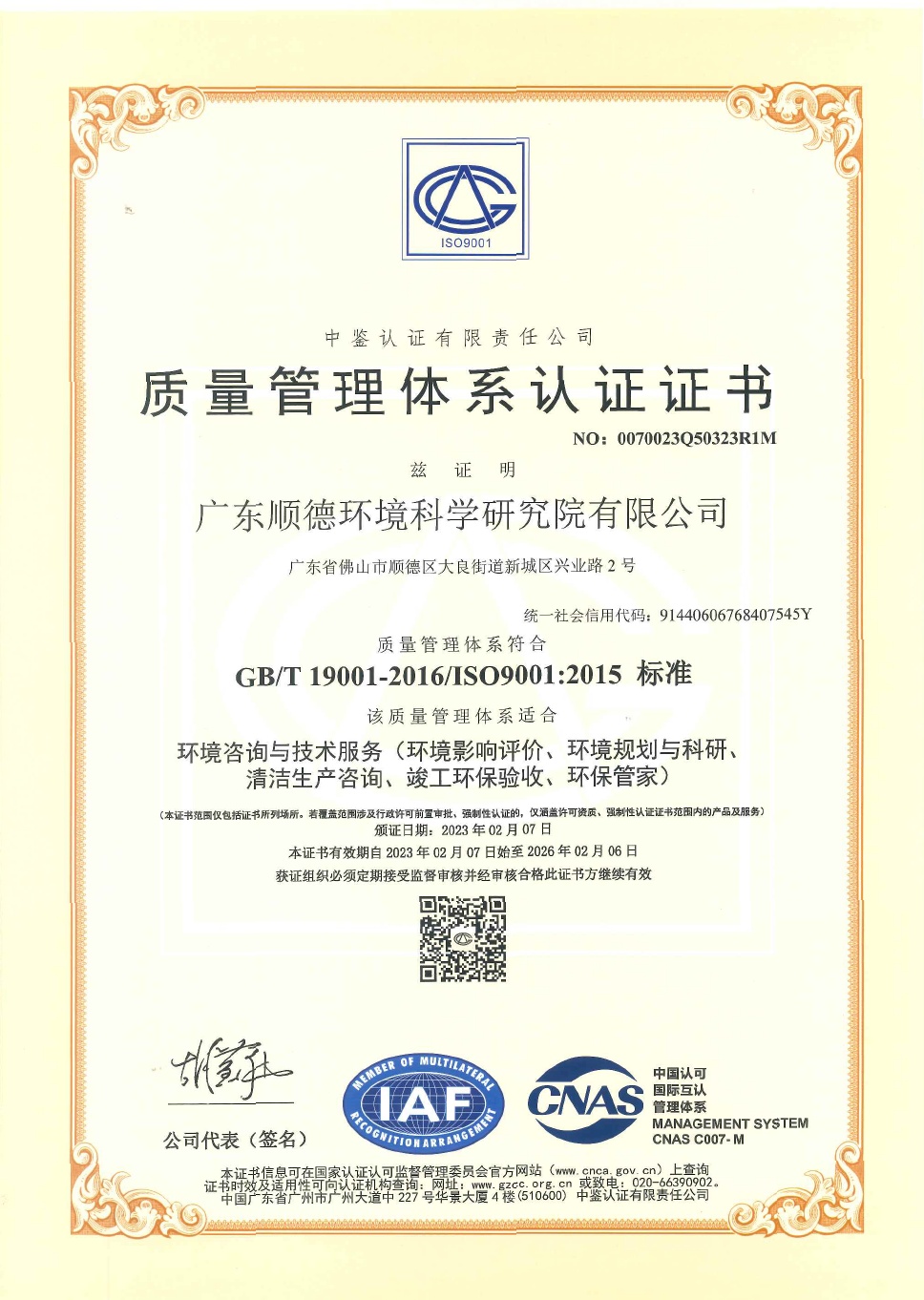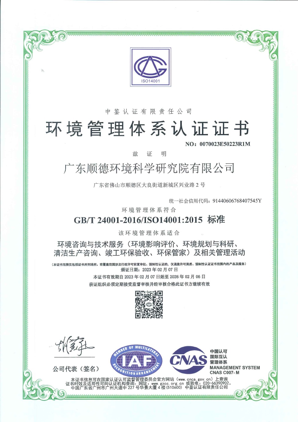 廣東順德環(huán)境科學研究院有限公司成立于1986 年,為全國首家由事業(yè)單位轉(zhuǎn)制的環(huán)境技術(shù)咨詢機構(gòu),為廣東省首批獲得原環(huán)評資質(zhì)的單位之一。經(jīng)過多年發(fā)展,我院業(yè)務(wù)范圍已涵蓋環(huán)境規(guī)劃與科研、環(huán)境影響評價、竣工環(huán)保驗收調(diào)查、環(huán)境檢測、環(huán)境事件應(yīng)急預(yù)案編制、環(huán)保管家服務(wù)、國家排污許可證申領(lǐng)與維護、土壤污染狀況調(diào)查、水質(zhì)高光譜遙感監(jiān)測、清潔生產(chǎn)審核咨詢、危險廢物鑒別、環(huán)境工程監(jiān)理、節(jié)能評估等等,是一家環(huán)境綜合咨詢服務(wù)企業(yè)。[更多]